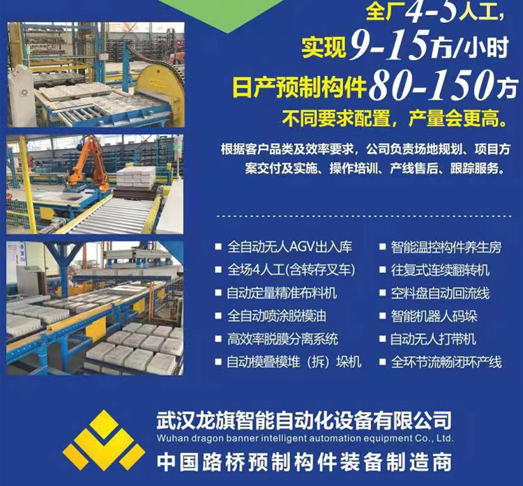 3、龍旗智能擁有預制構(gòu)件生產(chǎn)線設(shè)備多項國家專利技術(shù)。預制塊機械設(shè)備核心部件精工制造,采用抗疲勞設(shè)計,延長了主機的使用壽命。